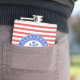 NewparkLane - conception moderne, flacon personnalisé, avec un motif rayé rouge et une ancre de bleu marine dans un cadre circulaire bleu. Facile à customiser avec votre ville nommée et préférée. Tout le style des textes, couleurs, tailles peut être modifié pour adapter vos besoins.
