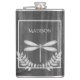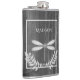 Profitez de vos boissons alcoolisées préférées à tout moment avec un flacon à enveloppement de vinyle rustique de libellule argenté. Le design de la fiole est composé d'une libellule vibrante ornée d'un feuillage délicat contre un arrière - plan en bois rustique gris foncé. Autres cadeaux disponibles avec ce design aussi.