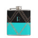 Flacon de boisson élégante dans un design de style Art Déco, en triangles noirs, turquoise et dorés. Un seul monogramme de lettre turquoise est prêt à être personnalisé. Belle idée cadeau pour elle.