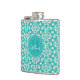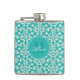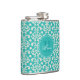 Caractéristiques de conception ce un motif turquoise élégant de damassé. Vous pouvez également personnaliser le flacon avec une initiale et un nom de monogramme. Ces flacons font de grands cadeaux pour le bachelorette ou les noces.