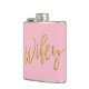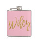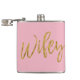Flacon blanc Wifey avec script d'huile d'or et Arrière - plan rose. La fiole Wifey fait un cadeau parfait pour la mariée pour la douche nuptiale ou la lune de miel et correspond à la fiole hubby pour le mari.