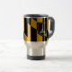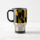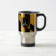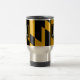 Travel Mug with flag of city of Baltimore, Maryland; black and yellow flag with an illustration of Battle Monument