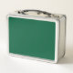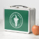 Metal Lunchbox with design with flag of Bangkok, capital city of Kingdom of Thailand; green flag with white illustration of an elephant in the center