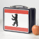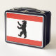 Metal Lunchbox with flag of Berlin, state flag with horizontal stripes of red and white, with an illustration of a black bear in the center