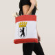 Tote bag with variant flag of Berlin, state flag with horizontal stripes of red and white, with an illustration of a black bear inside a shield with a crown