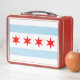 Metal Lunchbox with flag of city of Chicago (largest city in Illinois), white and light blue striped flag with four red stars
