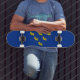 Skateboard with design with a flag of historic county of Sussex, in England, Great Britain; blue flag with six gold martlets