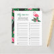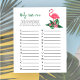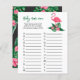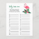 Baby shower invitation design avec flamingo rose avec frondes de feuilles de palmier vert luxuriant et fleurs d'hibiscus tropical. "Aloha Baby". Un motif à fleurs tropicales aux couleurs arrière - plans noires habille le dos de la carte.