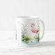 Mug avec un Flamant rose aquarelle dans un paysage printanier. Personnalisable .