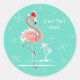 Design élégant avec une touche rétro, avec un flamant rose festif portant un chapeau de Père Noël rouge, des étoiles et des palmiers décorés de billes dressées contre un arrière - plan d'aqua. Un design personnalisable pour personnaliser avec votre propre texte, images et idées. Une image d'art numérique originale créée par Quirky Chic.