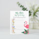 Baby shower invitation design avec flamingo rose avec frondes de feuilles de palmier vert luxuriant et fleurs d'hibiscus tropical. "Aloha Baby". Un motif à fleurs tropicales aux couleurs arrière - plans noires habille le dos de la carte.