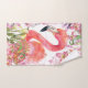 Printemps vintage et Flamant rose en Jungle Fleur - Motif de serviettes d'été. Ce feuillage Motif d'été illustré sur le design blanc est créé avec des éléments de fleurs tropicales. Le Flamant rose coloré de Flower Jungle - Summer Motif Illustration fait un beau design pour une maison élégante.