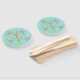Des flamants roses vifs battent leurs ailes et frottent leurs plumes contre un arrière - plan bleu aquatique avec des roseaux et des nénuphars. Un design élégant avec une touche rétro qui peut être personnalisé avec votre propre texte, images et idées. Une image d'art numérique originale créée par Quirky Chic.