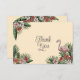 Cette élégante carte à plat en Merci hawaïen présente des illustrations à thème flamand tropical hawaïen dessinées à la main, à l'encre noire, présentant des flamants roses, des fleurs d'hibiscus et de jasmin, un ananas et des feuilles tropicaux. Le dos comporte un message de Merci personnel de la mariée à être. Arrière - plan jaune élégant.