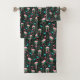 Cette élégante serviette de bain motif en flamand et un linge de toilette ont été conçus dans un style Art déco rétro des années 20. Les flamants roses vifs se reposent sur un arrière - plan qui comprend des frondes de fougères aux couleurs audacieuses et des formes géométriques rectangulaires dans des tons vert turquoise/bleu turquoise, le tout sur fond de noir. Ce joli design stylisé convient parfaitement à tous ceux qui aiment ces animaux tropicaux et qui recherchent un motif élégant avec une touche rétro des années 20.