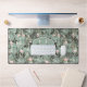 Ce somptueux tapis de bureau est orné d'un magnifique motif de flamants roses entouré d'abondants feuillages tropicaux et d'orchidées vert sauge et rose roux. Un étiquette a été fourni pour tenir votre nom et votre monogramme ou autre texte. Cherchez ID868 pour voir d'autres produits avec ce cool, motif tropical.