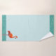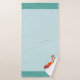 Flamant rose rose debout sur la plage sur le turquoise de serviettes clair ensemble. Idéal pour les amateurs de nature.
