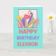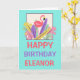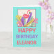 Flamant rose rose Nom feuille Joyeux carte d'anniv