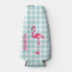 Joli aqua en vichy glacière de bouteille fait, avec des graphiques d'un dessin animé rose flamant. Personnalisez le texte rose en fonction de vos besoins.