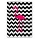 Une silhouette flamand rose vif de style rétro ou une forme contre un motif en zigzag noir et blanc contrastant.