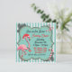 Voici une invitation de Noël inspirée par la déco pour ceux qui fêtent sous les tropiques ou tout climat chaud. Un flamant rose porte un chapeau de Père Noël, des bas rayés et un collier d'ornement avec sucres de canne, frondes de palmiers. Une invitation branchée pour votre fête de vacances. Illustration tirée à la main par McBooboo.