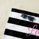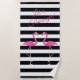 Cette serviette de plage tropicale rayée en noir et blanc est agrémentée de deux mignons flamants roses, et Let's Flamingle, écrit en rose vif, est parfait pour votre prochaine fête de piscine ou journée à la plage !