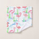 Serviette à thème d'étang avec un motif de flamants roses brillants marchant dans un étang illustré d'une serviette de bain rose et chaude.