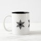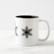 Tasse de café en blanc avec noir à l'intérieur, avec imprimé flocon de neige de vacances. Customiser cette tasse ou acheter tel quel.