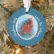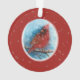 Les flocons de neige du Cardinal de Noël sur l'ornement en céramique rouge ou bleue - Un arrière - plan enneigé au bleu foncé crée un bel espace pour le Cardinal de repos. L'autre côté de l'ornement a un arrière - plan rouge vif. Un arrière - plan de flocon de neige argent chatoyant est également de chaque côté. L'hiver est un beau moment pour assister à des cardinaux. Ils ont l'air si festifs. Joyeuses fêtes de Kristin et Steve - KNS Card Shop.