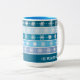 Cette tasse à café à deux tons modifiable a une illustration festive de flocons de neige qui entoure la tasse et un nom de famille ci-dessous. Vous pouvez modifier le nom ainsi que le style de police, la taille et la couleur. Vous pouvez également changer la couleur à l'intérieur de la tasse et de la bande derrière le nom. Profitez de votre nouvelle bougie à café bitonique de Noël modifiable!