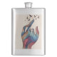 Élégamment surréaliste. Cette fiole classique enveloppe une main paisible qui se transforme en sommets majestueux de montagnes où les oiseaux s'envolent en liberté. Un compagnon parfait pour des sips spirituels, des cadeaux réfléchis, ou des moments de calme en déplacement. Pour ceux qui ont du sens.