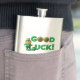 Un Leprechaun amusant en costume vert avec barbe rouge et une pièce d'or à la main vous souhaite bonne chance !