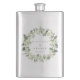 Un flacon hip élégant et personnalisé pour les célébrations de mariage / cadeaux / souvenirs. Avec des baies de neige et de l'eucalyptus peints à la main disposés dans une belle couronne botanique. Tout le texte est entièrement modifiable afin que vous puissiez facilement changer le message et modifier le style / couleur / taille / placement de la police. Articles de coordination disponibles dans ma boutique.