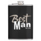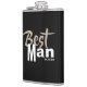 Flasque de témoin moderne. Texte contemporain en gris-brun et blanc sur fond noir avec date de mariage en texte bloc classique en bas à droite. La date du mariage peut être supprimée en effaçant le champ de texte ou modifiée pour personnaliser avec le nom du témoin ou les initiales des mariés.