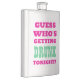 Offrez à votre ami ce flacon avec ce texte amusant en épingle chaude et vert. Gardez votre boisson médicinale dans ce contenant classique robuste. Vivez en sécurité après chaque moment difficile et épineux. Un pick-me-up mérité. Le texte dit, devine qui se soûle ce soir.