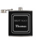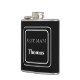 Flasque enveloppé de vinyle est présenté dans une couleur unie noire avec un nom de témoin exemple.