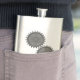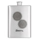 Fiole décorative en acier inoxydable, avec des graphiques de deux engrenages à l'aspect métallique. Personnalisez le texte gris riveté, en bas, pour répondre à vos besoins. Grande idée cadeau personnalisée.