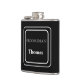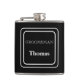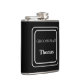 La flasque habillée de vinyle est présentée dans une couleur noire unie avec un exemple de nom de garçon d'honneur.