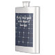 Vue rapprochée d'un panneau solaire pour produire de l'énergie écologique propre et renouvelable pour alimenter des lampadaires et d'autres appareils. Arrière - plan bleu profond et grille blanche. Drôle flacon de hanche personnalisable. Vous pouvez modifier ou supprimer le texte modèle Entièrement chargé d'énergie liquide.