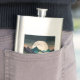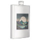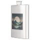 Paysage abstrait d'une gigantesque lune sur une scène de lac de montagne avec un troupeau d'oiseaux aux textures audacieuses et aux tons terre foncés de brun, beige, tan, bleu, cyan et noir.