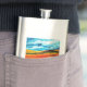 Paysage abstrait coloré de collines et de ciel aux couleurs jaune, rouge, vert et bleu.