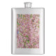 Plum à fleurs. Les fleurs fleurissent des arbustes à prune fleuris aussi appelés amandes à fleurs. Fleurs festives roses contre arrière - plan bleu et vert. Thème du printemps. Voici un prune, un amandier, un cerisier. Cet arbre est tout. Il est originaire de Chine et est scientifiquement appelé Louiseania triloba, Amygdalus triloba et Prunus triloba. Il est considéré comme une cerise d'arbustes, certains l'appellent sakura. Plante très élégante et décorative. Produits et souvenirs verticaux ou orientés portrait.