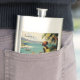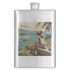 affiche de voyage vintage d'une Jamaïcaine assise près d'un palmier, profitant de la brise océanique et d'une magnifique vue sur la mer