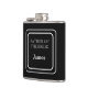 La flasque revêtue de vinyle est présentée dans une couleur unie noire avec un exemple de nom du père de la mariée.