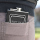 Un flasque recouvert de vinyle est présenté dans une couleur unie noire avec un exemple de nom de témoin.