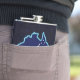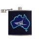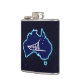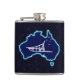 Restez au chaud sur le sentier. Une simple silhouette blanche d'un traîneau à chiens et de la Croix du Sud superposée sur une carte bleue de l'Australie. Tout sur un arrière - plan étoilé. Qui l'aurait nié ? Il se déplace à l'envers à Oz. Le traîneau à chiens est très populaire en Australie. Au Mont Hotham à Victoria, il y a une grande course chaque année.