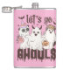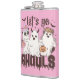 Un design d'Halloween mignon et plein d'esprit sur les T-shirts, tasses, sacs, coussins, boutons, et plus dispose de trois drôles d'Halloween avec cornes de diable et casquettes sorciers, chauves-souris, fleurs, citrouille Jack-o'-lantern, et texte qui dit Go Ghouls!