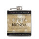 Célébrez le 1er anniversaire du mariage avec cette fiole commémorative de la hanche! Elégante écriture serif noir et blanc avec des confettis hexagonaux sur un arrière - plan de papier vieilli ajouter une touche mémorable pour cette occasion spéciale et jalon. Customisez les noms des heureux couples, les années de mariage et les messages de félicitations pour leur anniversaire de publication. Design © W.H. Sim. Voir plus sur zazzle.com/expressionsoccasions