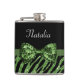 Immergez-vous dans le luxe girly avec ce flacon vert et noir chic de concepteur de parties scintillantes de zèbre d'impression avec un ruban d'étincelle de paillette attaché dans un arc luxe. Personnalisez ces tape-à-l'oeil et conception fascinante de mode de poster de animal en ajoutant votre nom. Image imprimée d'appartement, parties scintillantes ou ruban non réelles.
