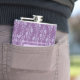 Joli et élégant flacon personnalisé de hanche avec un motif floral lilas décoratif et un arrière - plan pourpre luxuriant.